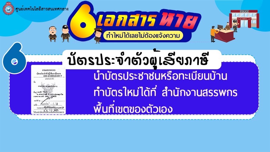 6 เอกสารสูญหาย ทำใหม่ได้เลยไม่ต้องแจ้งความ 20 พฤษภาคม 2566 โดย tase / ข่าวประชาสัมพันธ์,ข่าวประชาสัมพันธ์,ข่าวฝากประชาสัมพันธ์ FacebookFacebookXXLINELine