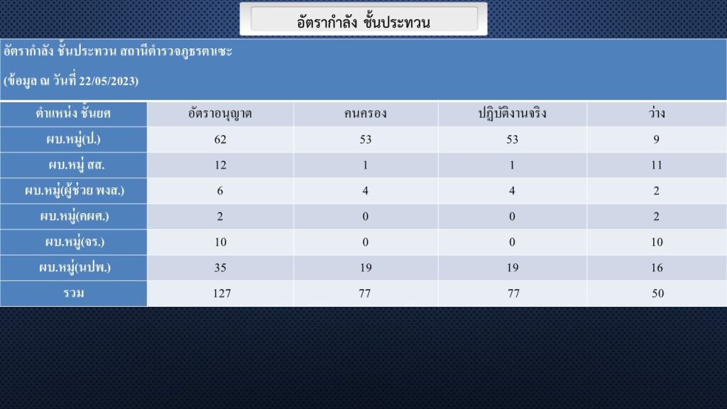ข้อมูลอัตตรากำลังพลของสถานีตำรวจภูธรตาเซะ