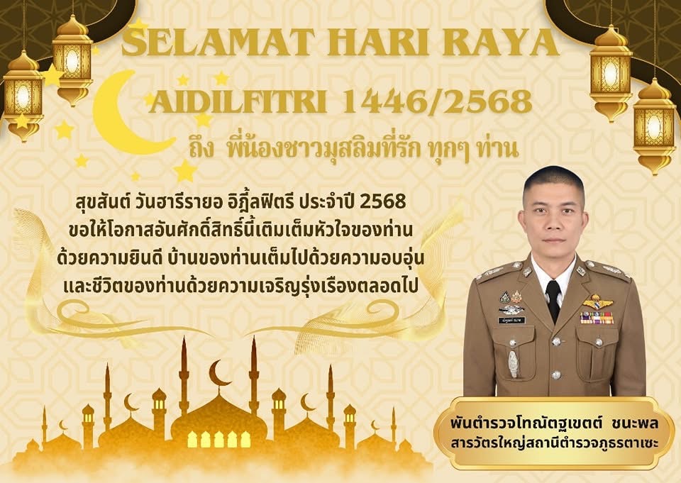 พ.ต.ท.ณัตฐเขตต์ ชนะพล สวญ.สภ.ตาเซะ ขออวยพรถึงพี่น้องชาวมุสลิมทุกท่าน เนื่อนในโอกาวันฮารีรายอประจำปี