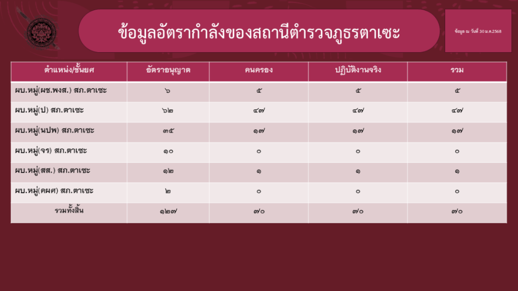ข้อมูล ณ วันที่ 1 เมษายน 2568